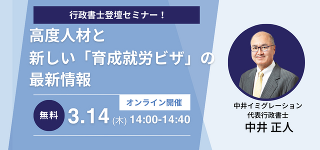 【無料ウェビナー開催 3月14日(木) 14時~】 高度人材と新しい「育成就労ビザ」の最新情報