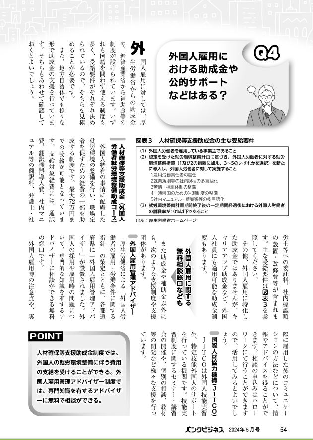 特集企画「外国人雇用を検討する取引先へのアドバイス」において、
